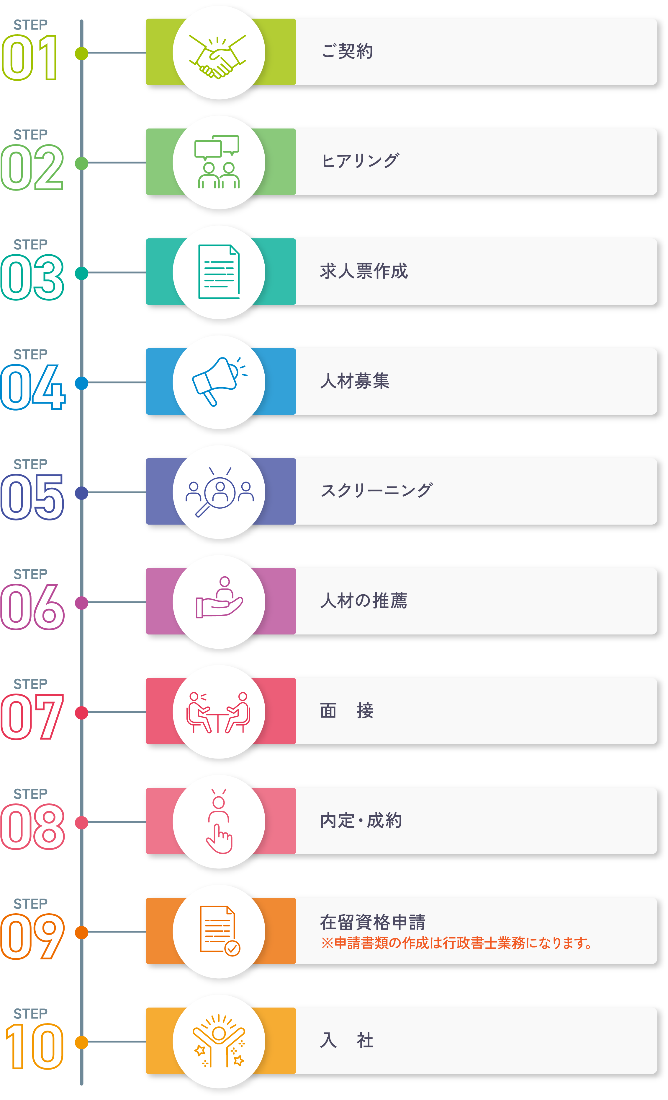 アジア圏の送り出し機関と提携し、日本で働きたい熱意ある外国人材と日本の企業様を結びつけ、採用から配属後の支援までをサポートいたします。